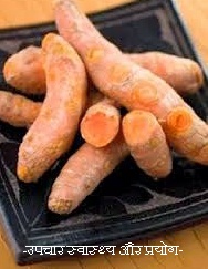 आंबा हल्दी को पीसकर, गरम करके बांधने से चोट को अच्छा करती है तथा सूजन दूर होती है।